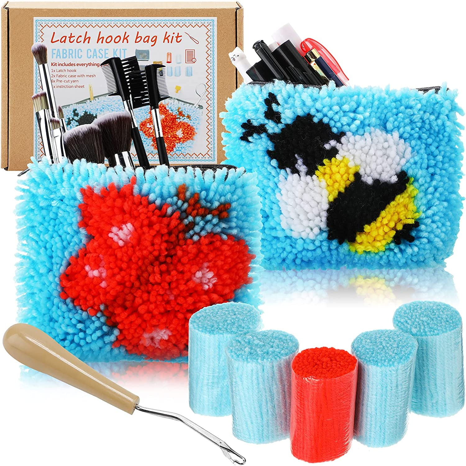 2 Pieces Butterfly And Bee Latch Hook Kit Starter Pencil Make Up Bag Cosmetic Bag Diy Sewing Kit Butterfly And Bee Latch Hook Craft Kit For Kids Beginners Walmart Canada
